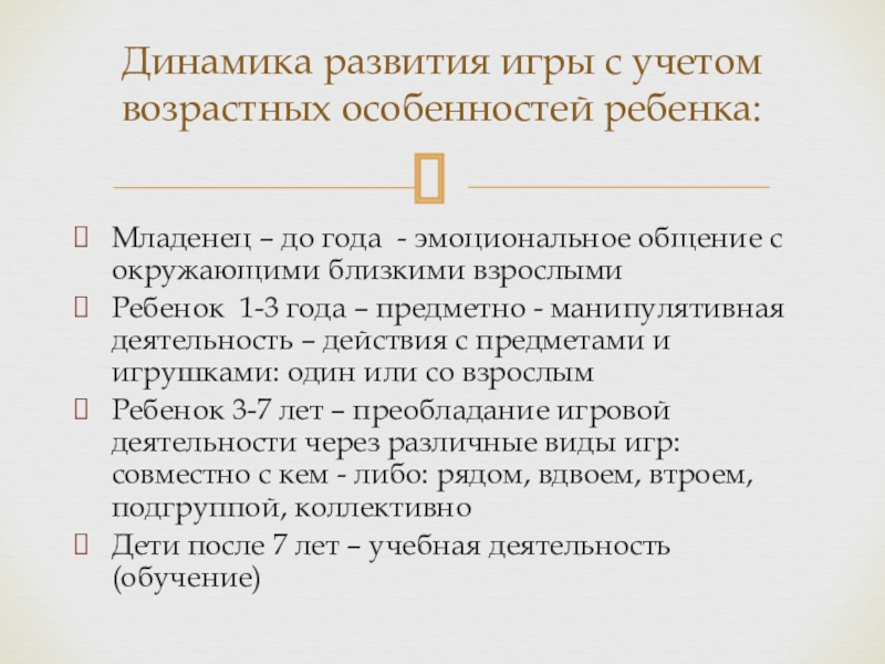 Динамика развития игры с учетом возрастных особенностей ребенка: