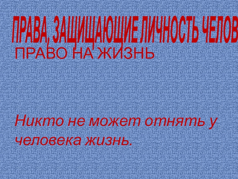 ПРАВА, ЗАЩИЩАЮЩИЕ ЛИЧНОСТЬ ЧЕЛОВЕКА:ПРАВО НА ЖИЗНЬНикто не может отнять у человека жизнь.