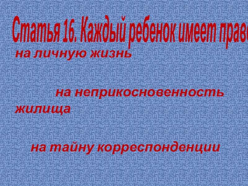 Статья 16. Каждый ребенок имеет право :на личную жизнь       на неприкосновенность