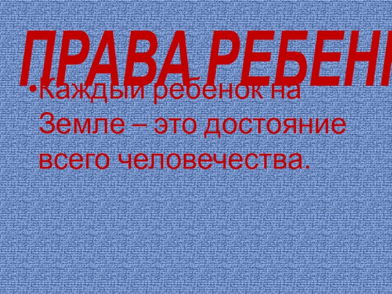 ПРАВА РЕБЕНКАКаждый ребенок на Земле – это достояние всего человечества.