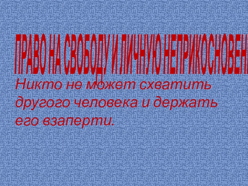 ПРАВО НА СВОБОДУ И ЛИЧНУЮ НЕПРИКОСНОВЕННОСТЬНикто не может схватить другого человека и держать его взаперти.