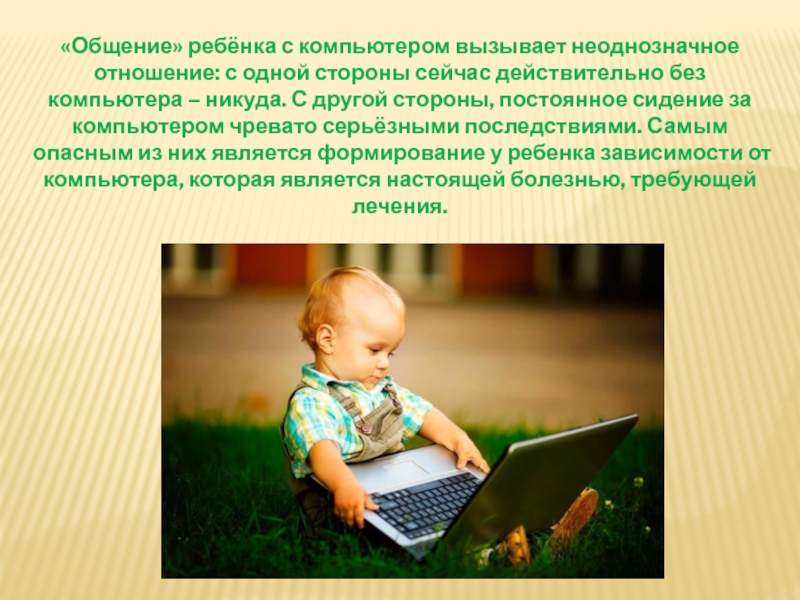 Слайд 3«Общение» ребёнка с компьютером вызывает неоднозначное отношение: с одной стороны сейчас