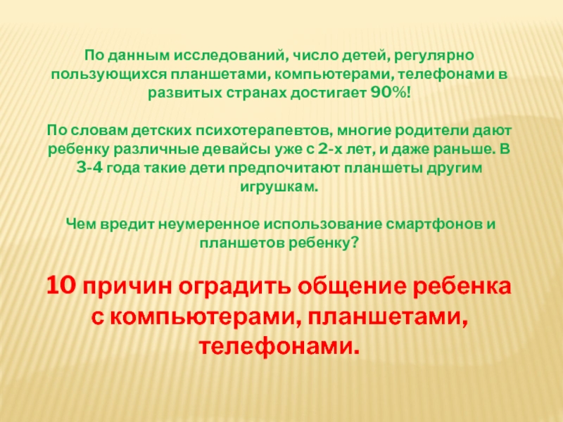 Слайд 5По данным исследований, число детей, регулярно пользующихся планшетами, компьютерами, телефонами в развитых