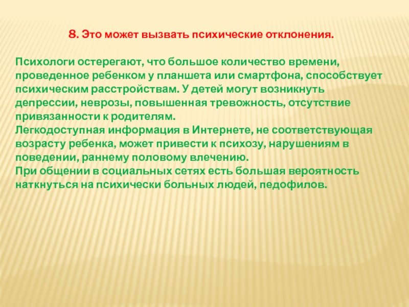 Слайд 138. Это может вызвать психические отклонения.