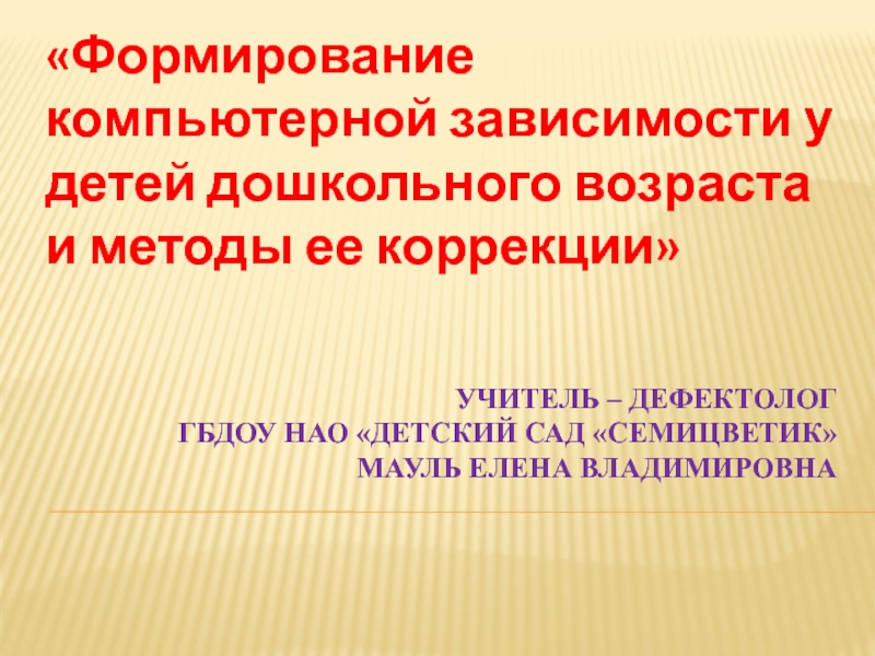 «Формирование компьютерной зависимости