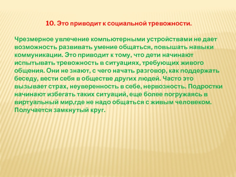 Слайд 1510. Это приводит к социальной тревожности.