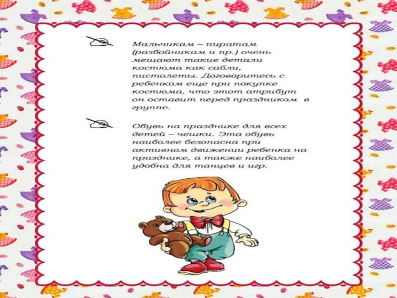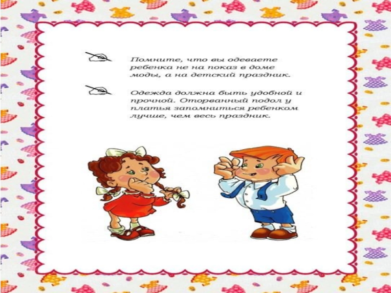 Презентация, доклад на тему Консультация для родителей Одежда ребёнка на детском празднике