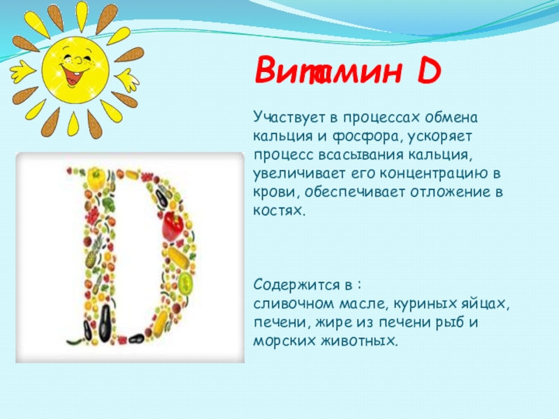 Участвует в процессах обмена кальция и фосфора, ускоряет процесс всасывания