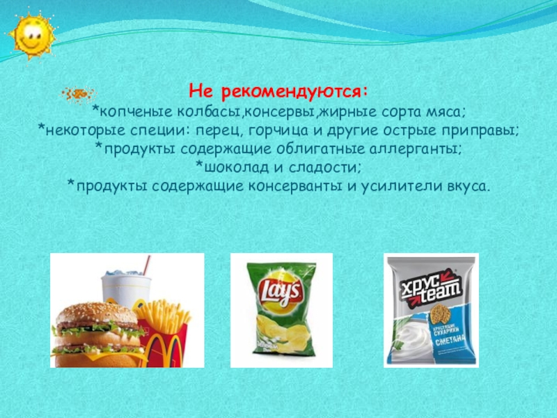 *питание должно быть разнообразным, только это является условием его сбалансированности. Необходимо учитывать индивидуальные особенности детей, возможную непереносимость каких-либо продуктов.