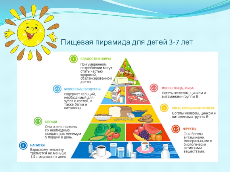 Слайд 4Пищевая пирамида для детей 3-7 лет