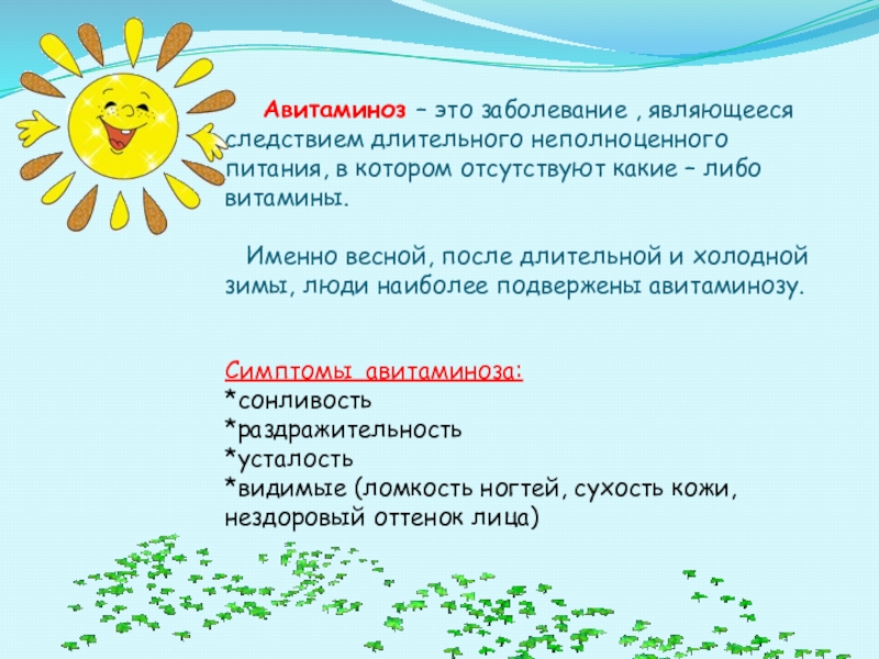 Слайд 6 Авитаминоз – это заболевание , являющееся следствием длительного неполноценного