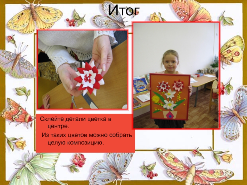 Итог Склейте детали цветка в центре. Из таких цветов можно собрать целую композицию.