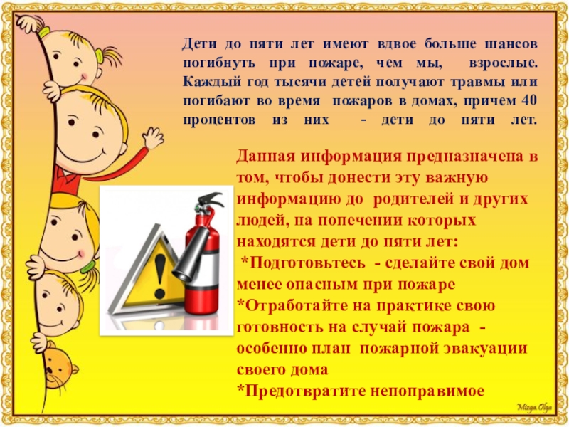 Данная информация предназначена в том, чтобы донести эту важную информацию до родителей и других людей, на попечении которых находятся дети до пяти лет:
