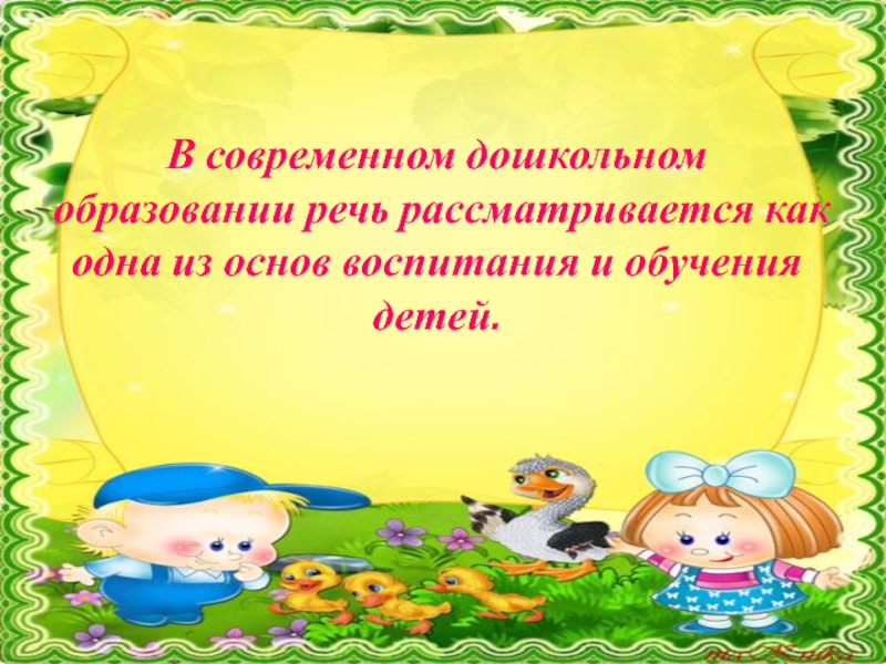 Слайд 3 В современном дошкольном образовании речь рассматривается как одна из основ воспитания
