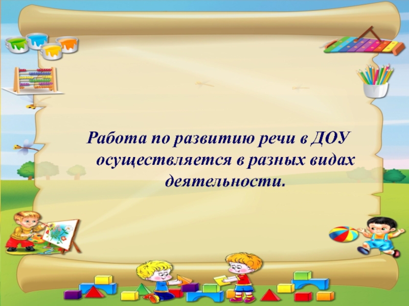 Работа по развитию речи в ДОУ осуществляется в разных видах деятельности.