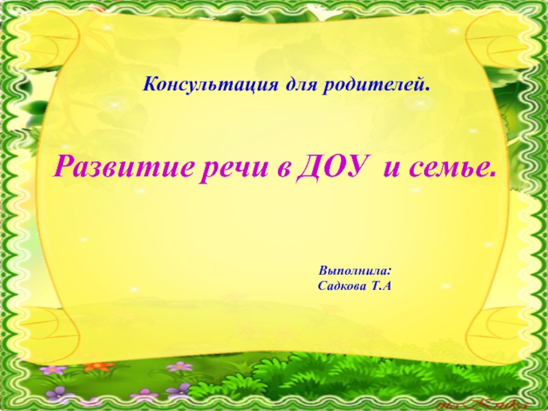 Развитие речи в ДОУ и семье. Выполнила:Садкова Т.АКонсультация для родителей.