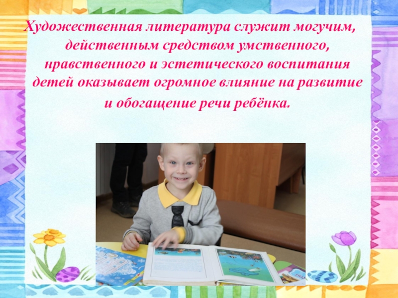 Художественная литература служит могучим, действенным средством умственного, нравственного и эстетического воспитания детей оказывает огромное влияние на развитие
