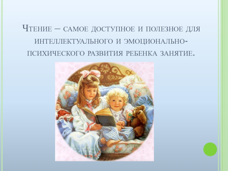 Слайд 9Чтение – самое доступное и полезное для интеллектуального и эмоционально-психического развития