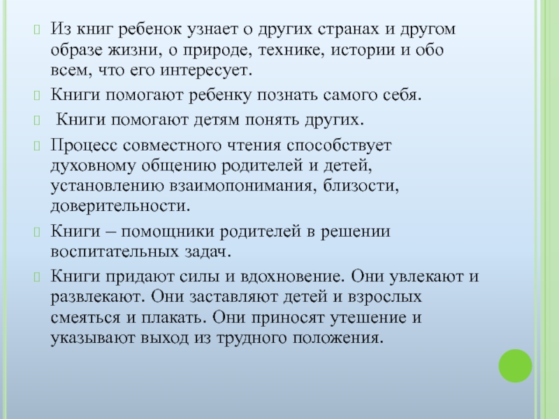 Слайд 8Из книг ребенок узнает о других странах и другом образе жизни,