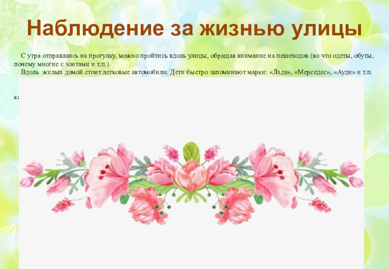 пройтись вдоль улицы, обращая внимание на пешеходов (во что одеты, обуты, почему многие с зонтами и т.п.)