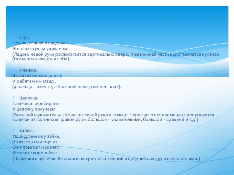 Слайд 142. упражнения для пальцев статические, т.е. простое изображение предмета: