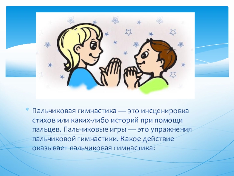 пальцев. Пальчиковые игры — это упражнения пальчиковой гимнастики. Какое действие оказывает пальчиковая гимнастика: