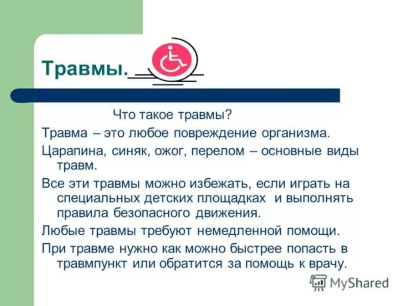 Презентация, доклад на тему Консультация для родительского собрания на тему: Детский травматизм