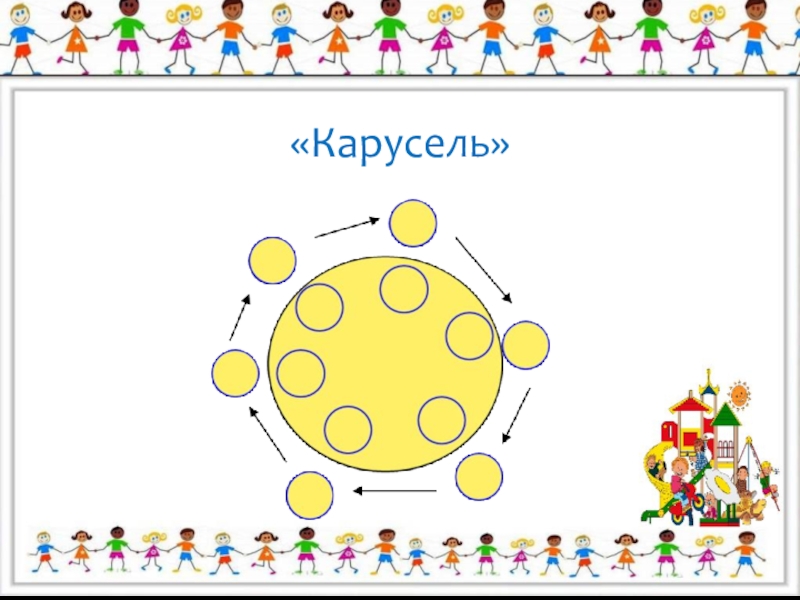 старшая группа – работа в парах, хоровод, цепочка, карусель, интервью, работа в малых группах (тройках), аквариум;