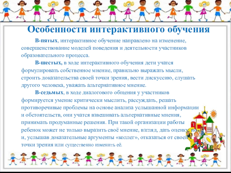 В-пятых, интерактивное обучение направлено на изменение, совершенствование моделей поведения