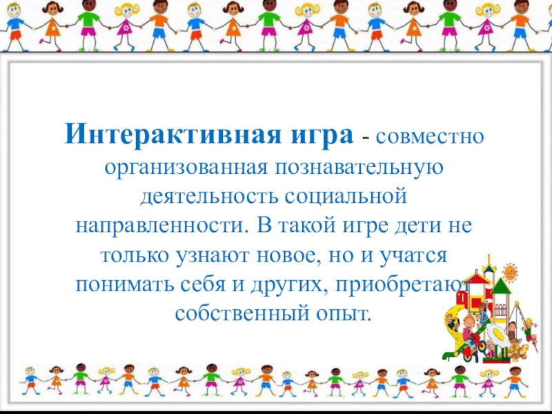 Слайд 9Интерактивная игра - совместно организованная познавательную деятельность социальной направленности. В такой