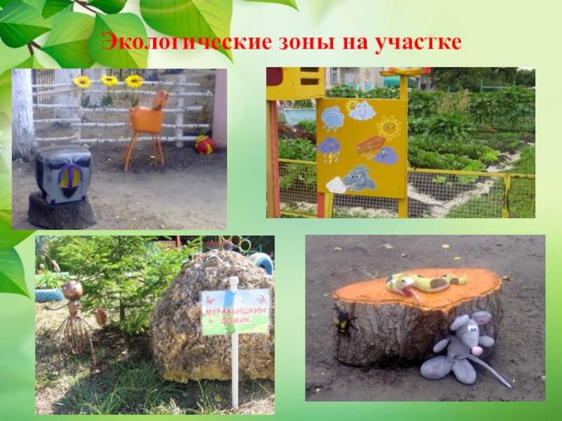 В детском саду в качестве условных заместителей (элементов модели) выступают символы разнообразного характера: создаваемые детьми конструкции, аппликации, рисунки, геометрические фигуры, символические изображения предметов (условные обозначения, силуэты, контуры, пиктограммы), планы и многое другое.