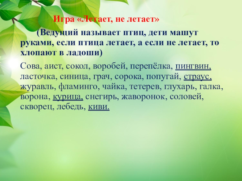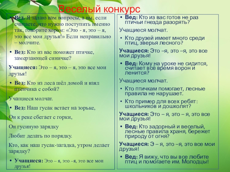 Вед: Я вижу, что вы все любите птиц и помогаете им. Молодцы!