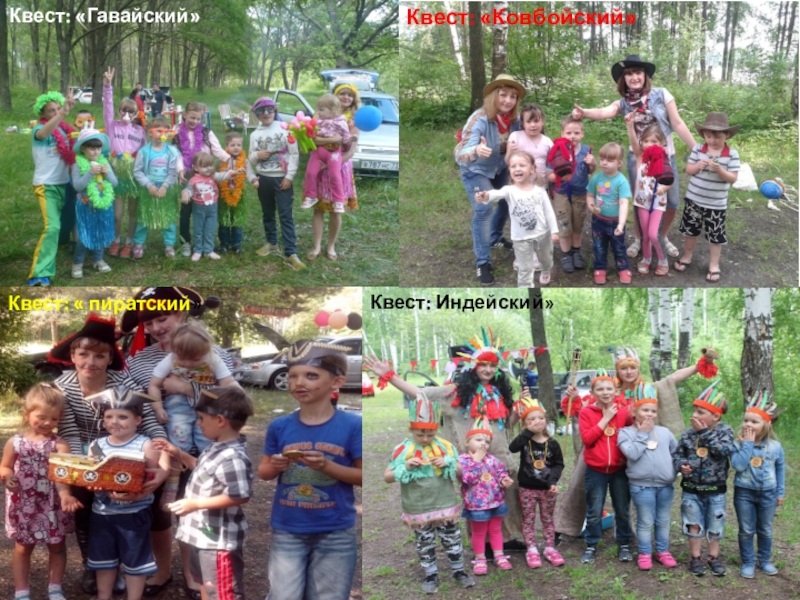 маршруте. Перед детьми ставится задача, имеющая игровой характер (они направляются к царю Гвидону, или на остров сокровищ). На маршруте необходимо организовать остановки, где детям будут предлагаться различные игры и задания. Педагоги должны разделить между собой функции: часть из них сопровождает детей по маршруту, а другие находятся на своих точках и организуют для них задания.