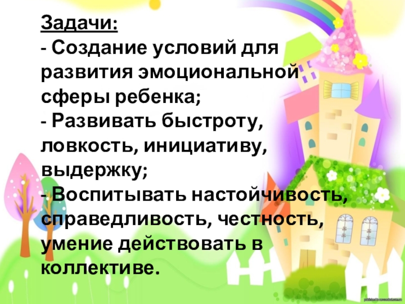 - Воспитывать настойчивость, справедливость, честность, умение действовать в коллективе.