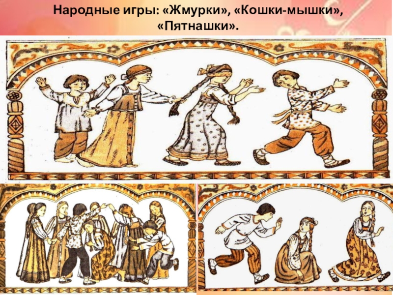 Слайд 5Народные игры: «Жмурки», «Кошки-мышки», «Пятнашки».