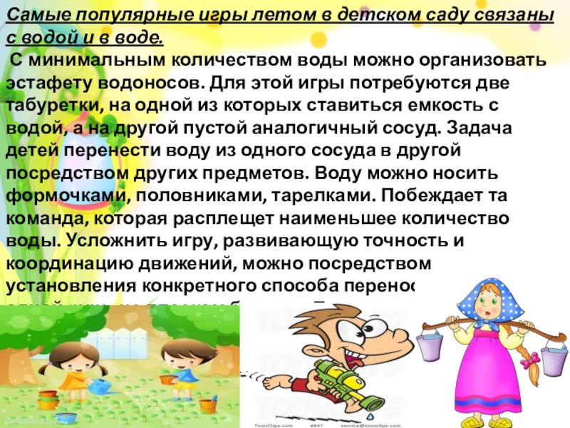 Слайд 19Самые популярные игры летом в детском саду связаны с водой и
