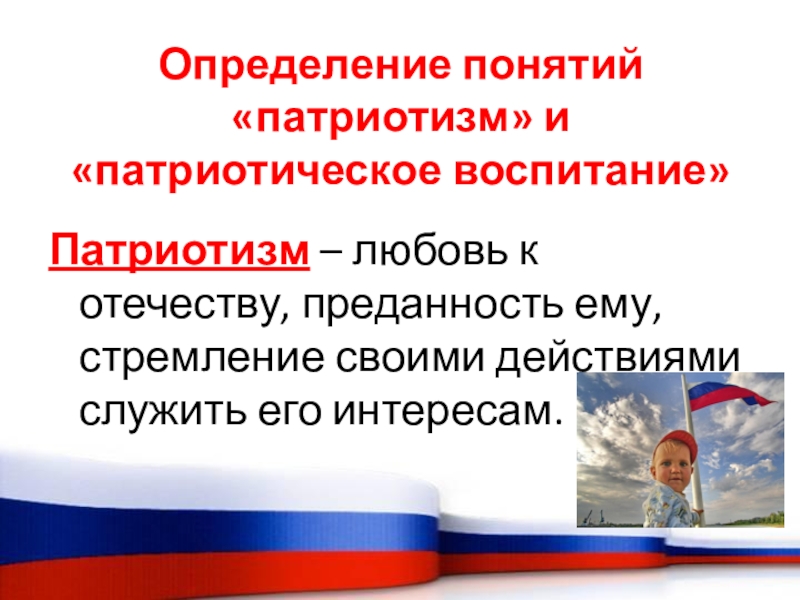 Слайд 11Определение понятий «патриотизм» и «патриотическое воспитание»