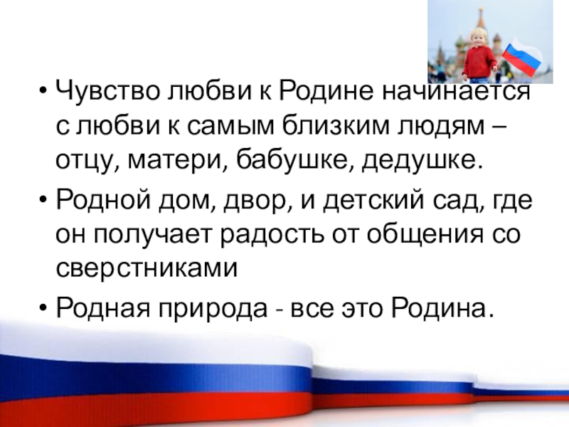 Слайд 4Чувство любви к Родине начинается с любви к самым близким людям