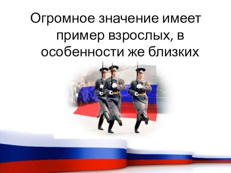 Слайд 8Огромное значение имеет пример взрослых, в особенности же близких людей.