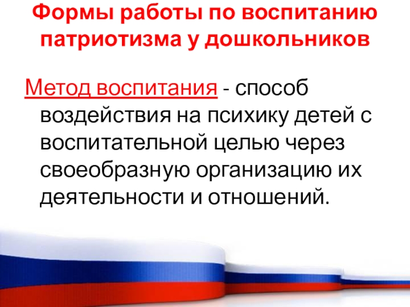 Слайд 18Формы работы по воспитанию патриотизма у дошкольников