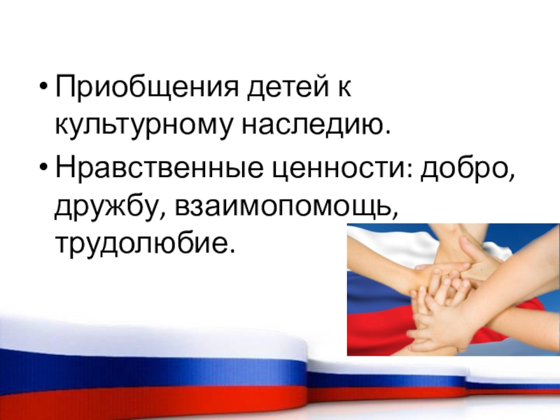 Слайд 5Приобщения детей к культурному наследию.