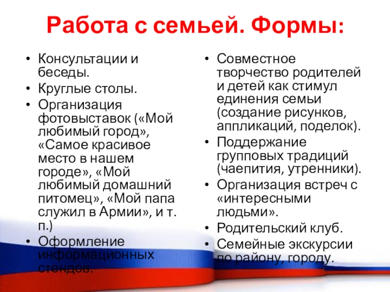 Слайд 21Работа с семьей. Формы: