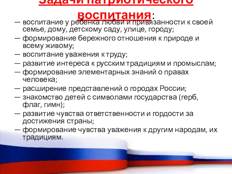 Слайд 14Задачи патриотического воспитания: