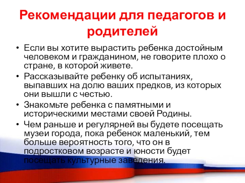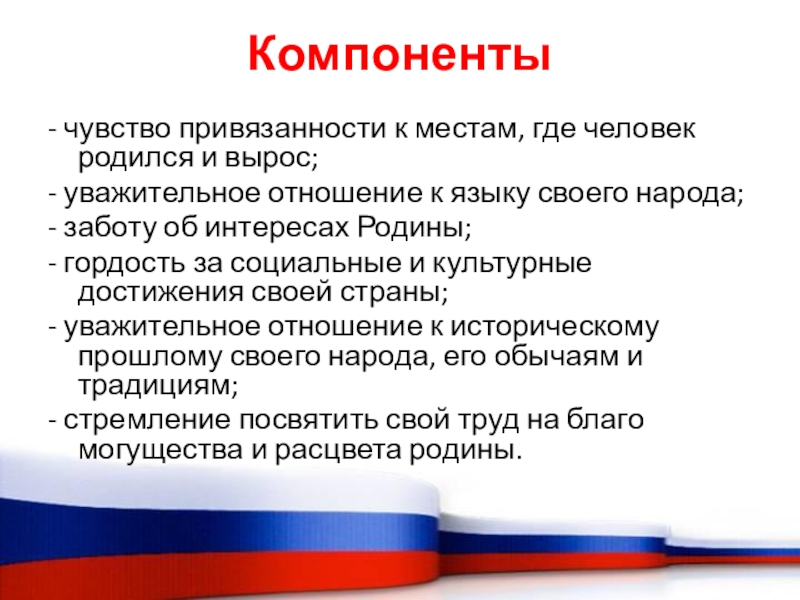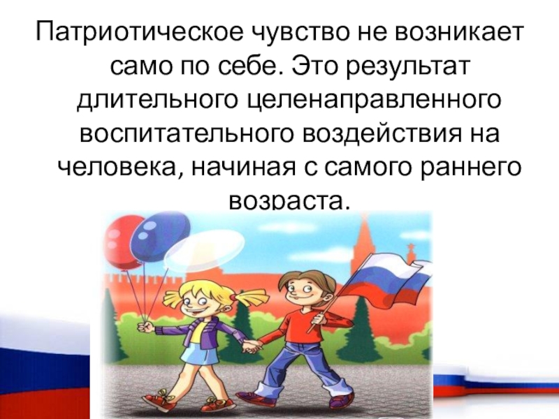Слайд 25Патриотическое чувство не возникает само по себе. Это результат длительного целенаправленного