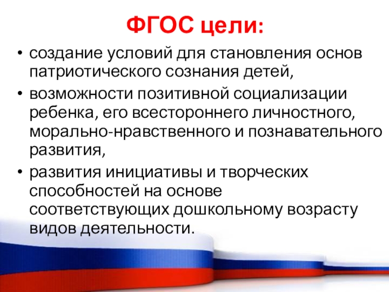 создание условий для становления основ патриотического сознания детей,