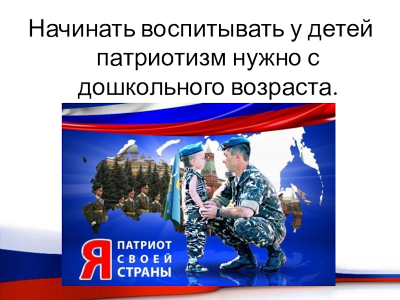 Слайд 26Начинать воспитывать у детей патриотизм нужно с дошкольного возраста.