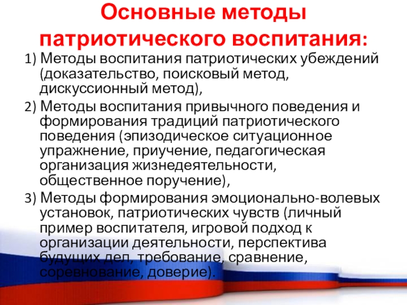 1) Методы воспитания патриотических убеждений (доказательство, поисковый метод,