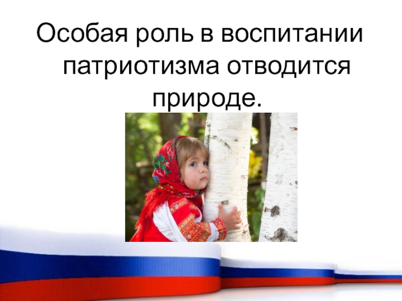 Слайд 7Особая роль в воспитании патриотизма отводится природе.
