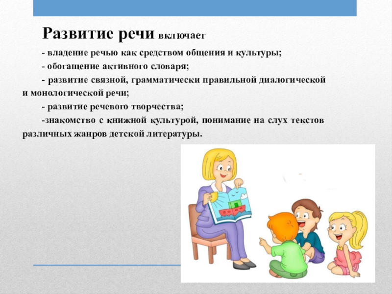 Слайд 7Развитие речи включает
