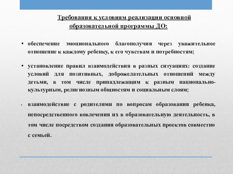 Слайд 9Требования к условиям реализации основной образовательной программы ДО: